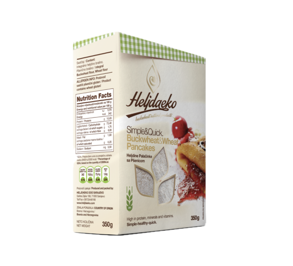 Omiljeni i opće poznati proizvod od kombinacije heljdinog i pšeničnog brašna, popularne heljdine palačinke pogotovu u SAD, Kanadi i Francuskoj! Pripremanje palačinaka od odabranog organskog heljdinog zrna sa kvalitetnim, pšeničnim brašnom opisano je u uputstvu na ambalaži proizvoda. Heljdine palačinke mogu se koristiti kako u slanim tako i u slatkim kombinacijama.