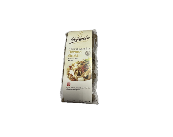 Heljdina tjestenina poznata je kao najbolji izvor visokih bioloških proteina i vrlo je cijenjena zbog svojih nutritivnih prednosti. Specifičnog je okusa i mirisa, konzumira se na „hiljadu“ načina, kao prilog mnogim jelima, uz razne vrste sireva, umaka, kao poseban specijatet umiješana u razne salate, ipak, pojedinci ne koriste nikakve priloge uz nju, jer sama po sebi heljdina tjestenina ima posebno primamljiv i „zdrav“ okus.